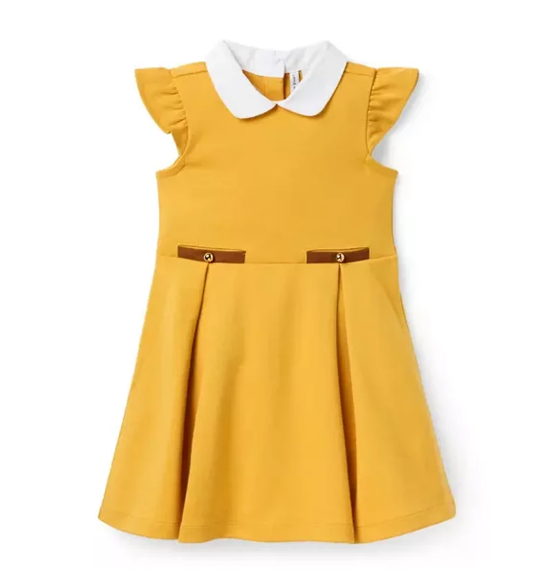 Dressed up or down, our flutter sleeve ponte dress never disappoints. Featuring sueded details, gold-tone buttons and a contrast collar. 85% Cotton Ponte/12% Polyester/3% Spandex Short Sleeve Button Back Bloomer Included (Sizes Up To 18-24M) Machine Washable; Imported