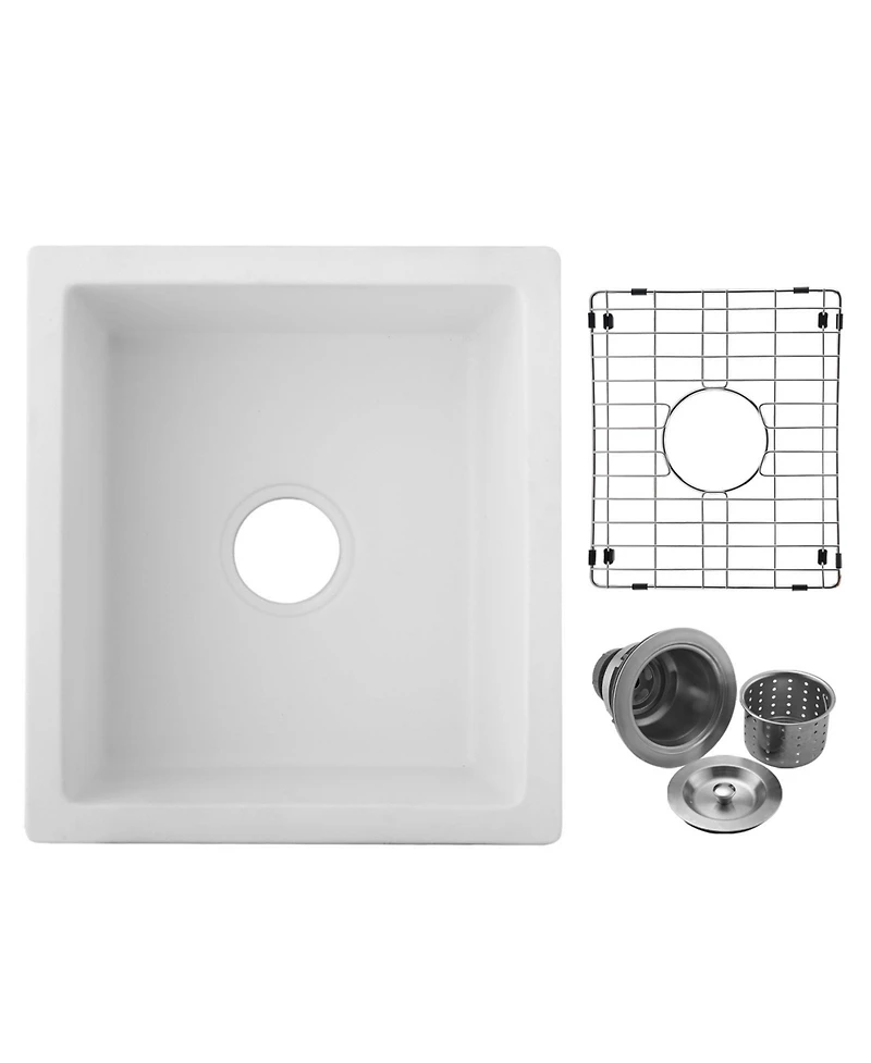 flynama 18x16inch Quartz Undermount Bar Sink with Grid and Strainer Heat Stain Resistant