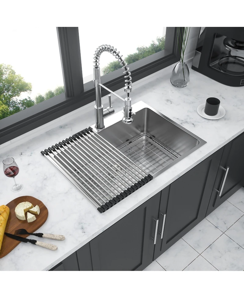 Introduce durable style and superior value to your kitchen with this 25 inch drop in sink expertly crafted from true 1 5mm thick 16 gauge T304 stainless steel Its deep 10 inch bowl efficient drainage and commercial grade brushed finish ensure a long lasting scratch resistant and quiet workspace
