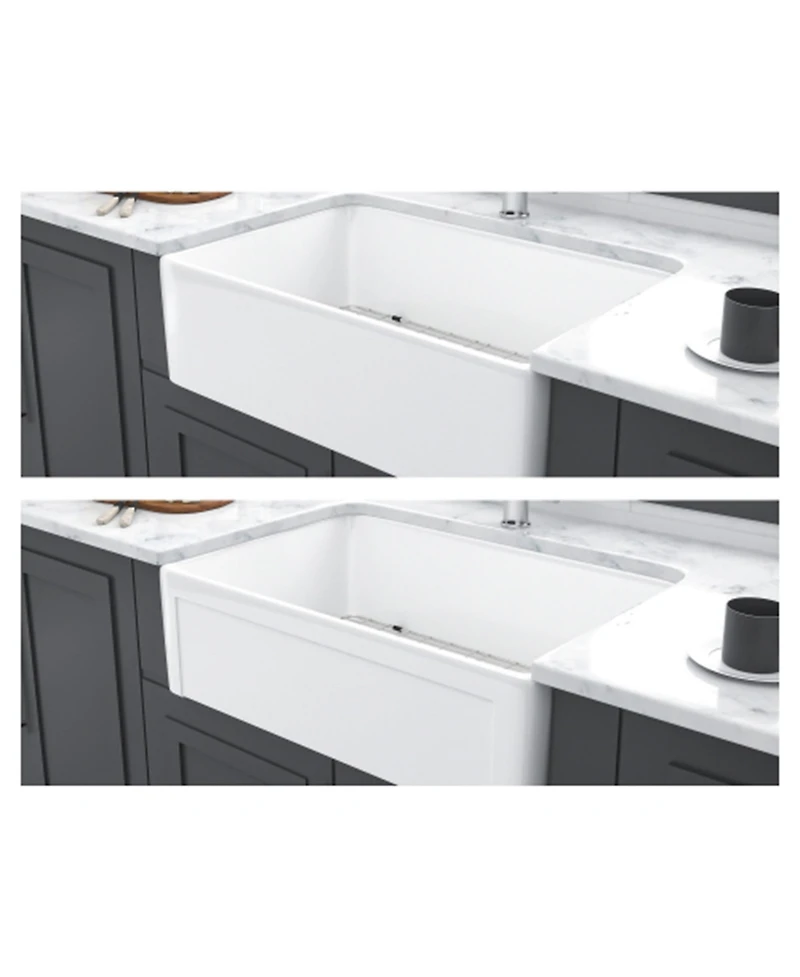Introduce timeless elegance and versatile style to your kitchen with this 30 inch white farmhouse sink Its reversible apron front durable glazed ceramic and deep 10 inch bowl offer easy cleaning ample space and flexible installation for a custom look