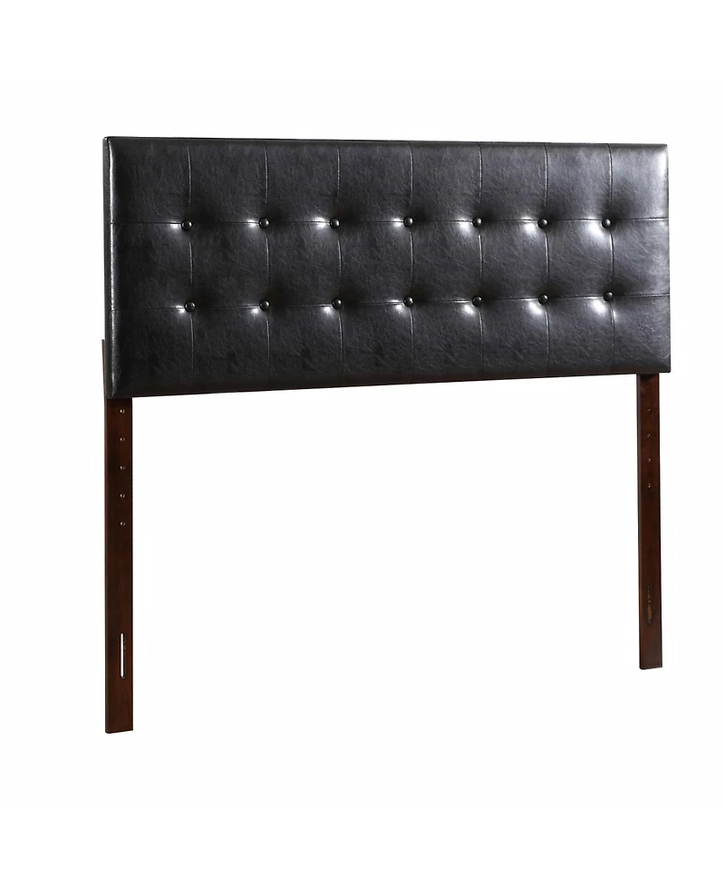 This black queen headboard is covered in easy to maintain faux leather with faux jewel button tufting. It has adjustable height from 41 to 53 inch, can be mounted to bed or wall.