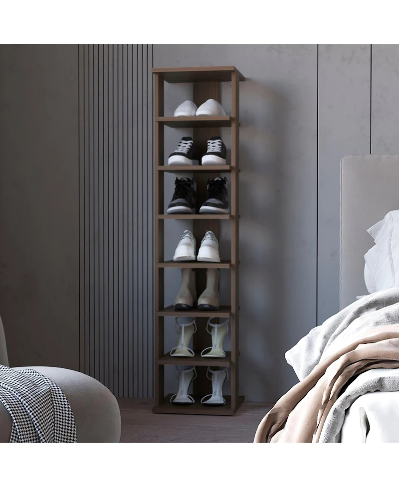 Slim Shoe Rack Tower, 7 Shelves, Vertical Storage Organizer – Ideal for Entryway or Closet Keep your footwear collection neat and accessible with this slim shoe rack tower. Featuring 7 open shelves, it s perfect for organizing everything from heels and sneakers to sandals and flats. Its vertical design maximizes storage in minimal space, making it an excellent choice for small entryways, closets, or bedrooms. Sleek and compact, this rack helps maintain order while adding a touch of modern simplicity to any room. Keywords: vertical shoe rack, 7-tier shoe organizer, slim shoe shelf, entryway storage, closet shoe rack, tall shoe tower, small space storage, footwear organizer. Materials: Particle board and melamineDimensions: 48.7" (H) x 11.7" (W) x 12.1 (D)"