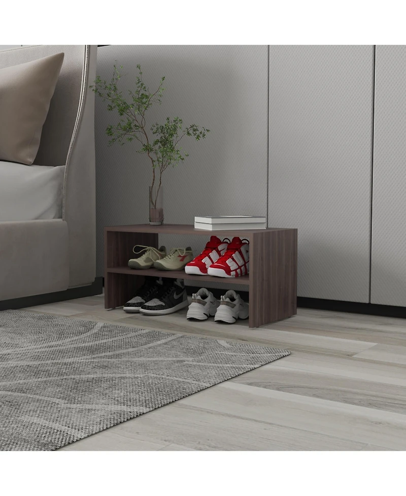 Fm Furniture Norris shoe rack in melamine with 2 shelves,Gray Walnut