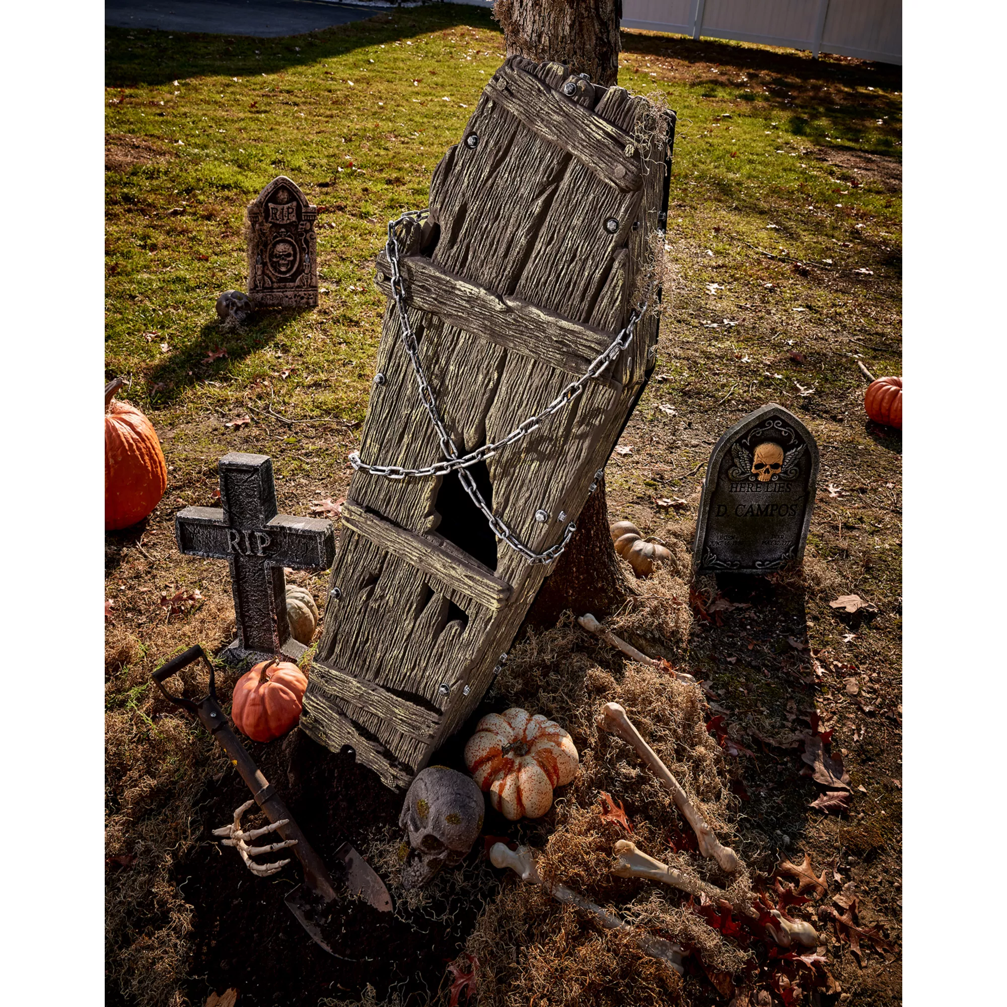 Make this terrifying Foam Coffin a part of your eerie haunted house and everyone will be wondering who's inside. Made from lightweight styrofoam material this coffin is the perfect addition to your Halloween display.