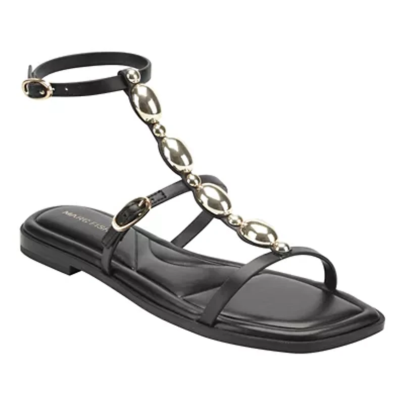 Stay fashionable in the Marc Fisher Folai casual sandals. Featuring a modern square toe, gold embellishments and an adjustable ankle strap. The Folai are sure to impress! Designed for the modern woman, Marc Fisher Footwear provides statement shoes for every occasion. -Material: Faux Leather/Man Made Buckle closure Imported Product Specifications 0.55 in. M Material Faux Leather