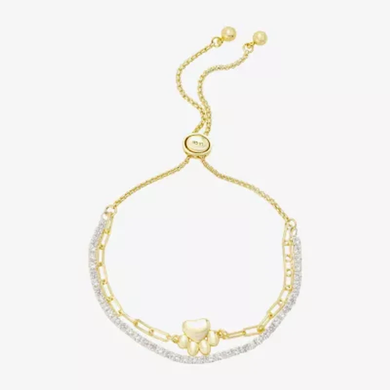 Footnotes Dog Mom Paw Womens Cubic Zirconia 14K Gold Over Brass Bolo Bracelet