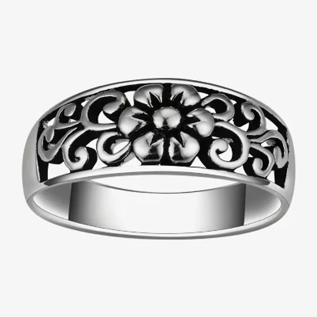 Footnotes Filigree Womens 7MM Sterling Silver Flower Band