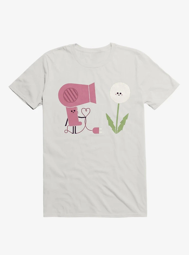 Forbidden Love Hair Dryer And Dandelion White T-Shirt