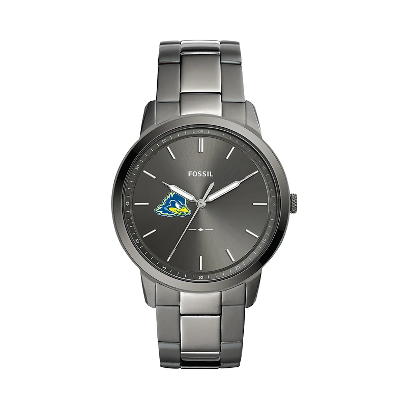 Add a pop of Delaware Fightin' Blue Hens spirit to any outfit with this sleek Minimalist Three-Hand Smoke Watch from Fossil. Built with classic quartz movement and featuring a detailed Delaware Fightin' Blue Hens logo, it's the perfect way to put your team pride on display in a classic and timeless way.