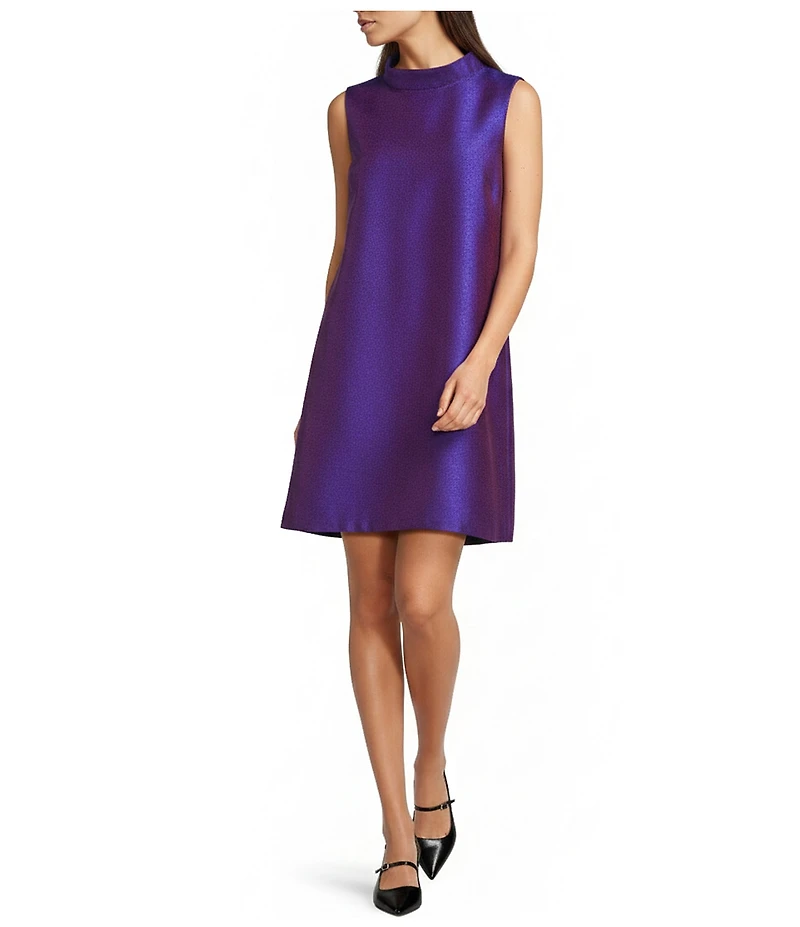 From FRANCES VALENTINE, this dress features: Dupioni fabrication Mock neckline Sleeveless A-line silhouette Side pockets Inverted box pleat at back Back bow details Straight hem Back zip closure Approx. 37.75" length Polyester Machine wash Imported.