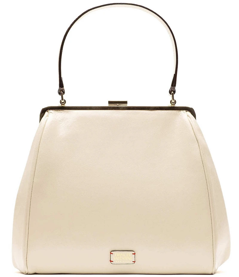 From FRANCES VALENTINE, the Katherine Crinkled Leather Frame Bag features: Crinkled leather Frame closure Footed bottom Interior zip pocket Logo plaque Approx. 9.06" L x 4.33" W x 9.06" H Approx. 5.91" handle drop Imported.