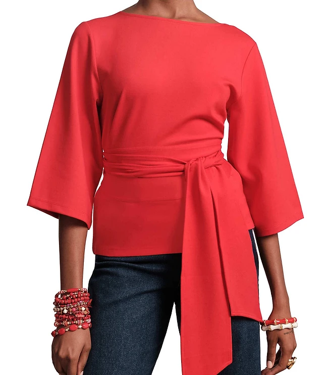 FRANCES VALENTINE Whitney Viscose Blend Boat Neck 3/4 Sleeve Wrap Top