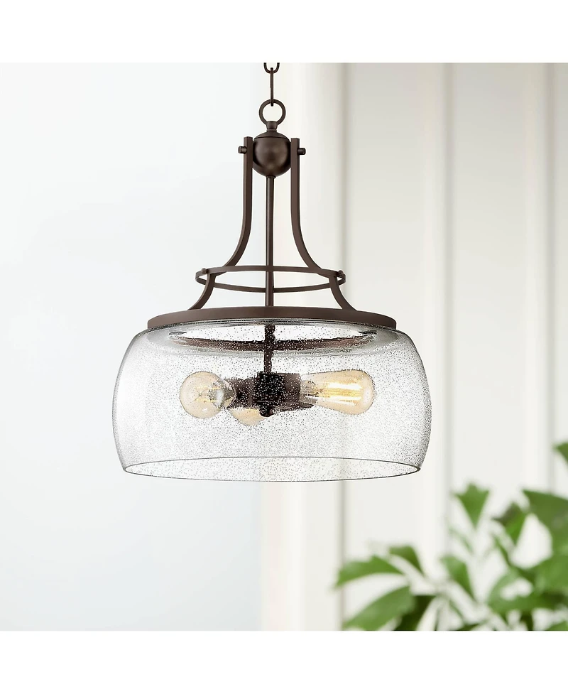 Franklin Iron Works Charleston Painted Bronze Iron Pendant Chandelier 16" Wide Rustic Farmhouse Clear Glass Shade Led 3-Light Dining Room House Foyer in Franklin, TN