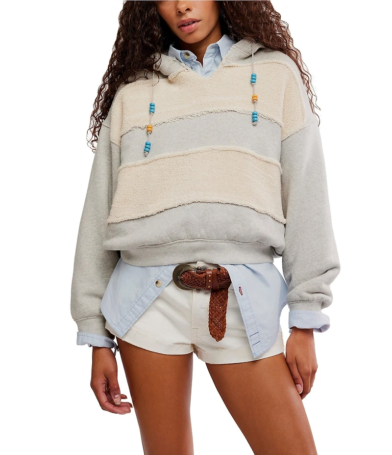 Free People Camp Crush Beaded Drawstring Long Sleeve Knit Hoodie