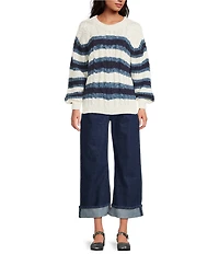 Free People Frankie Cable Stripe Crew Neck Long Sleeve Sweater