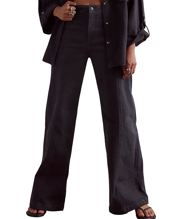 Free People Women's Libre Front-Seam Wide-Leg Jeans