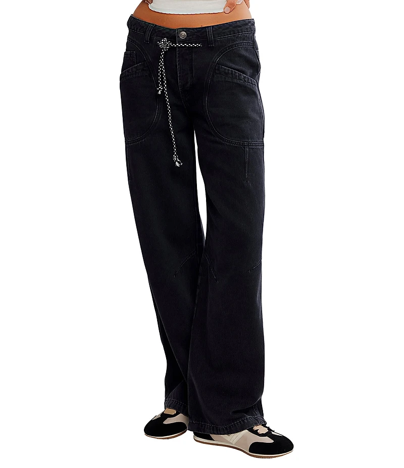 From Free People, these jeans feature: Rigid denim fabrication Low-rise waistline Boyfriend silhouette Pull-on style Button-fly closure Drawcord waistband and cuffs 5-pocket design Rounded seam details Approx. 30" inseam; 11" rise  Cotton/tencel Machine wash Imported.