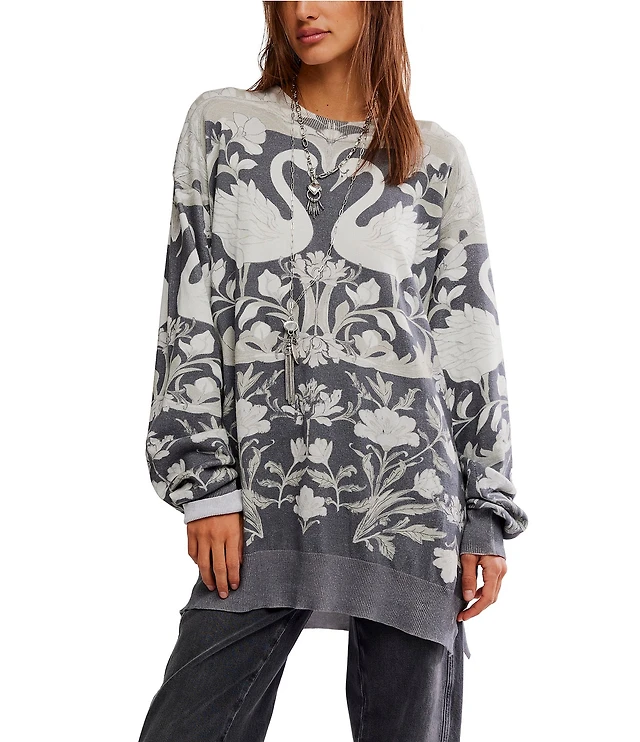 Free People We The Free Nouvelle Printed Crew Neck Long Sleeve Sweater