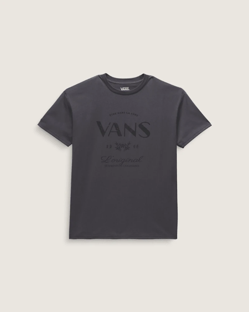 Dive into your mental machinations in the French Lost Thoughts T-Shirt, an oversized heavy cotton jersey short sleeve crew neck T-shirt with a graphic of a Vans® logo crest on the front.
