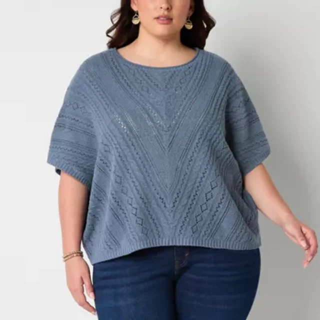 St. John's Bay Plus Womens Crew Neck Short Sleeve Pullover Sweater