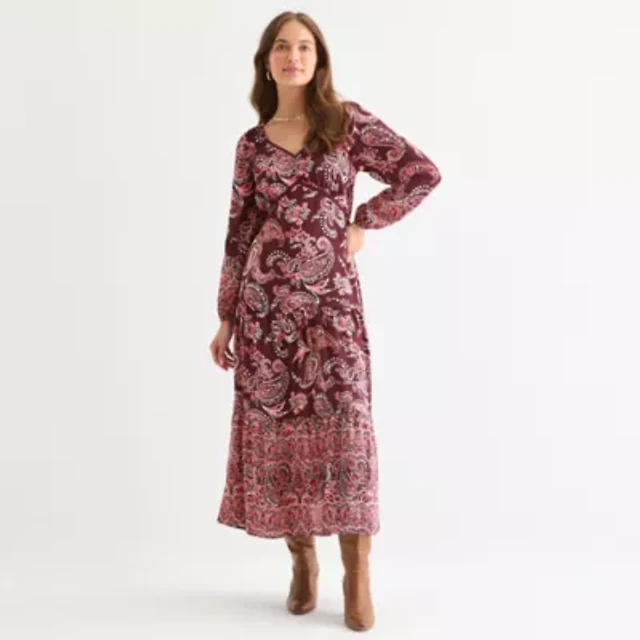 Worthington Womens Plus Long Sleeve Floral Maxi Dress