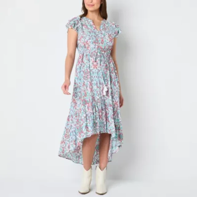 julia jordan Women's Printed Flutter-Sleeve High-Low Maxi Dress