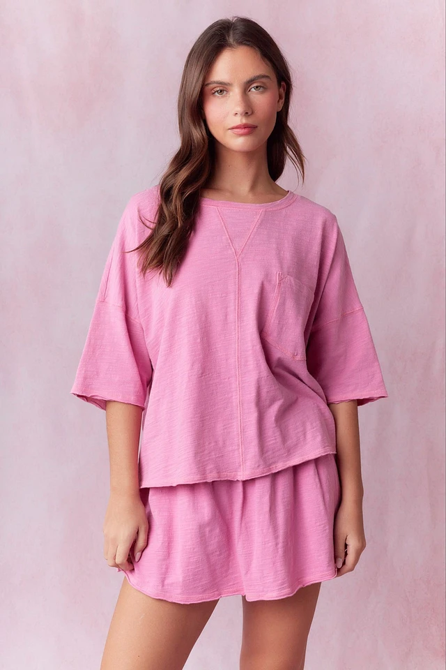 Fuchsia Crew-Neck Cropped Top