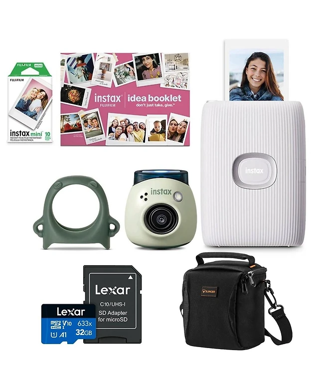Fujifilm Instax Pal Digital Camera and Mini Link 2 Smartphone Printer Bundle With Lexar 32GB Micro Sd Memory Card with Sd Adapter and Slinger
