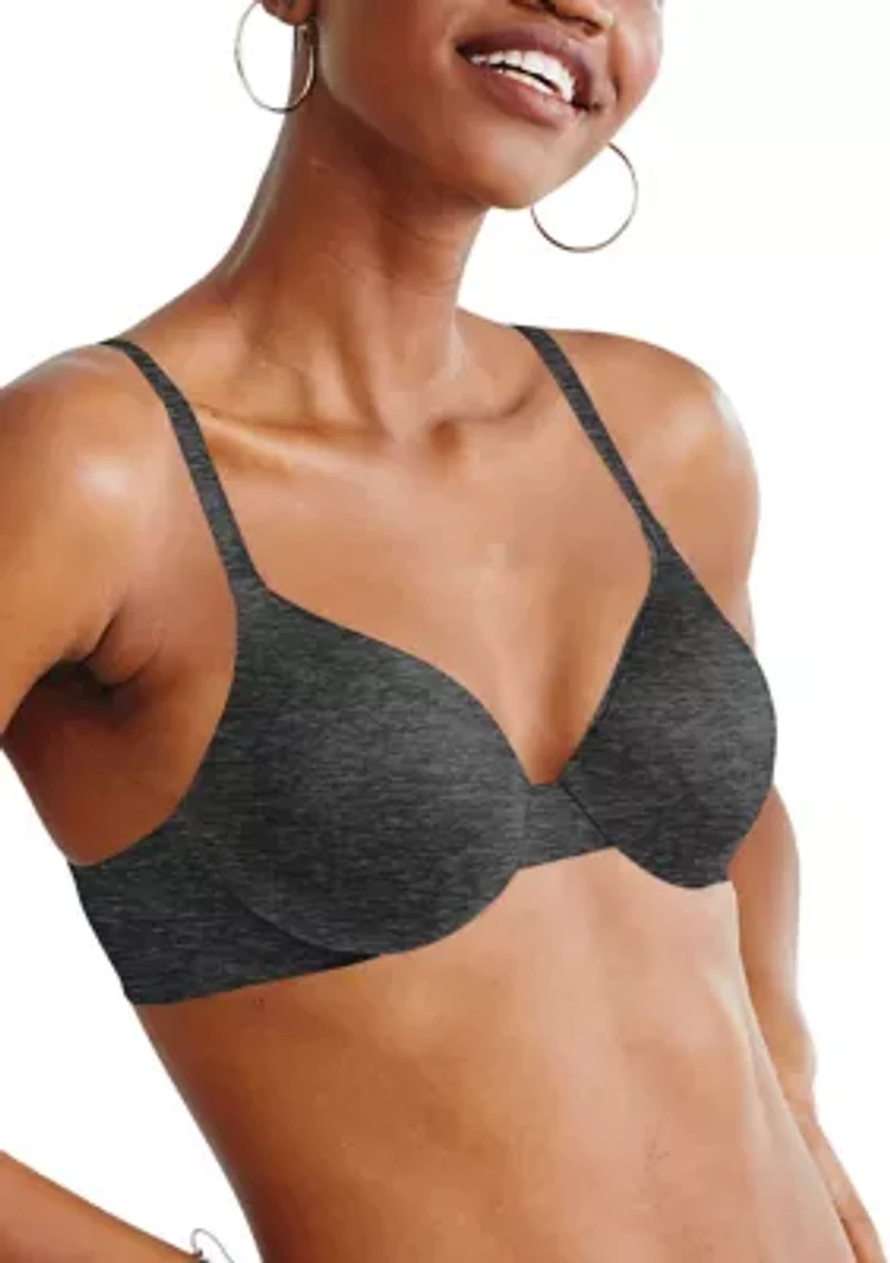 Updated with a four-way stretch comfort band, this bra from Hanes® is designed with wings to provide all-day comfort without binding or pinching. Average figure fit Back hook closure Convertible straps for multiple ways to wear Concealing petals for no show through Adjustable straps Full coverage Underwire support Moisture-wicking lining on cups Bra padding Imported Material & Care Nylon, spandex Hand wash