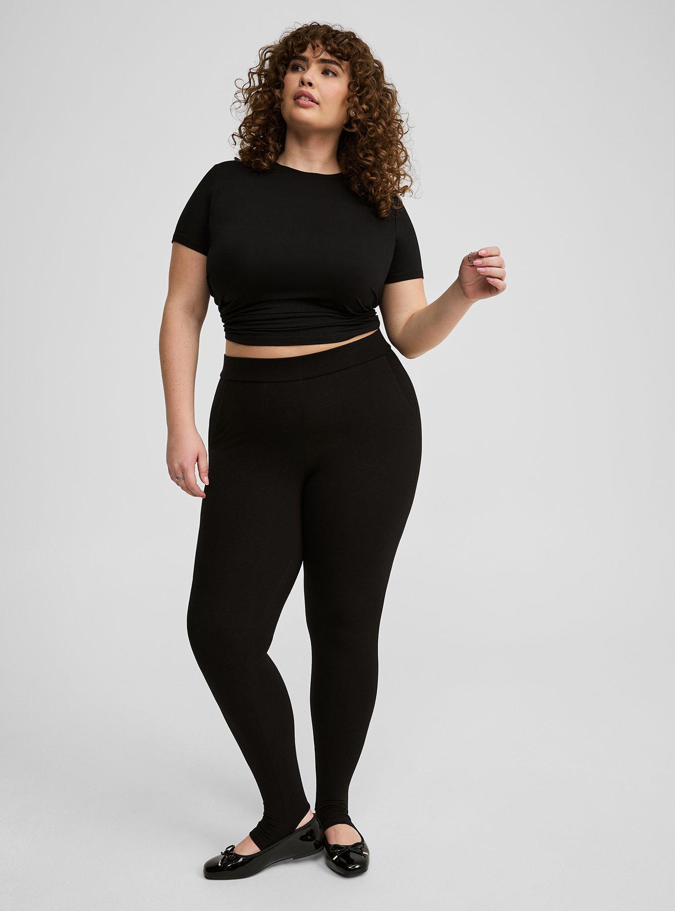 FIT High rise. 2'' Signature Waistband keeps things smooth and won't roll down. Stay-put stirrup straps. Full length. 27'' inseam. MATERIALS + CARE Premium knit: Thick cotton-blend fabric that smooths and flatters. 4-way stretch with great recovery. 95% cotton, 5% spandex. Machine wash cold. Dry low. Imported. DETAILS Pockets. Opaque. WHY WE LOVE IT Our best-selling leggings with stay-put stirrups! Designed with the perfect fit, to be totally opaque (no see-through leggings here) and keep things sleek and smooth!