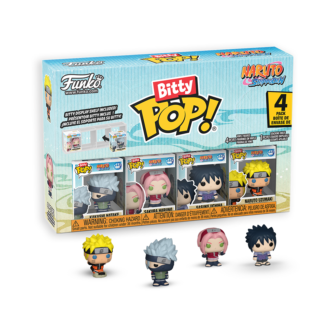 The world of POP! is getting bigger—and smaller—with Bitty POP! collectibles! Expand your Naruto: Shippuden collection with this 4-pack featuring Bitty POP! Kakashi Hatake, Bitty POP! Sakura Haruno, Bitty POP! Sasuke Uchiha, and Bitty POP! Naruto Uzumaki.