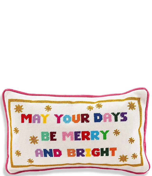 Furbish Holiday Collection Merry & Bright Needlepoint Pillow