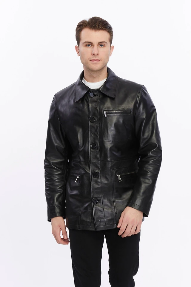 Furniq Uk Men's Utility Style Leather Jacket