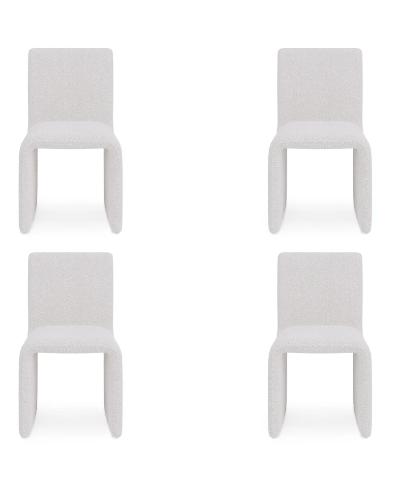 Introducing the Emila Dining Chairs, available in Ricotta Boucle. This chair blends modern design with a minimalist silhouette, and unparalleled comfort complementing various dining tables and decor styles. The Ricotta Boucle brings a cozy, textured feel, adding warmth to any dining space.