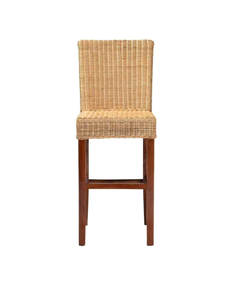 Carve out a personal rustic paradise with the soothing tones of the Racquel bar stool. This tranquil piece consists of a robust mahogany wood frame wrapped in woven rattan. Its angled backrest encourages casual relaxation while lending a distinguished silhouette. Granting a serene ambiance to the modern home, the Racquel bar stool elevates any occasion. Due to the nature of the natural materials used in this product, it may have variations in areas such as, but not limited to, color, pattern, grain and texture. The hair-like strands of rattan or rattan-fiber are common due to nature of the material.