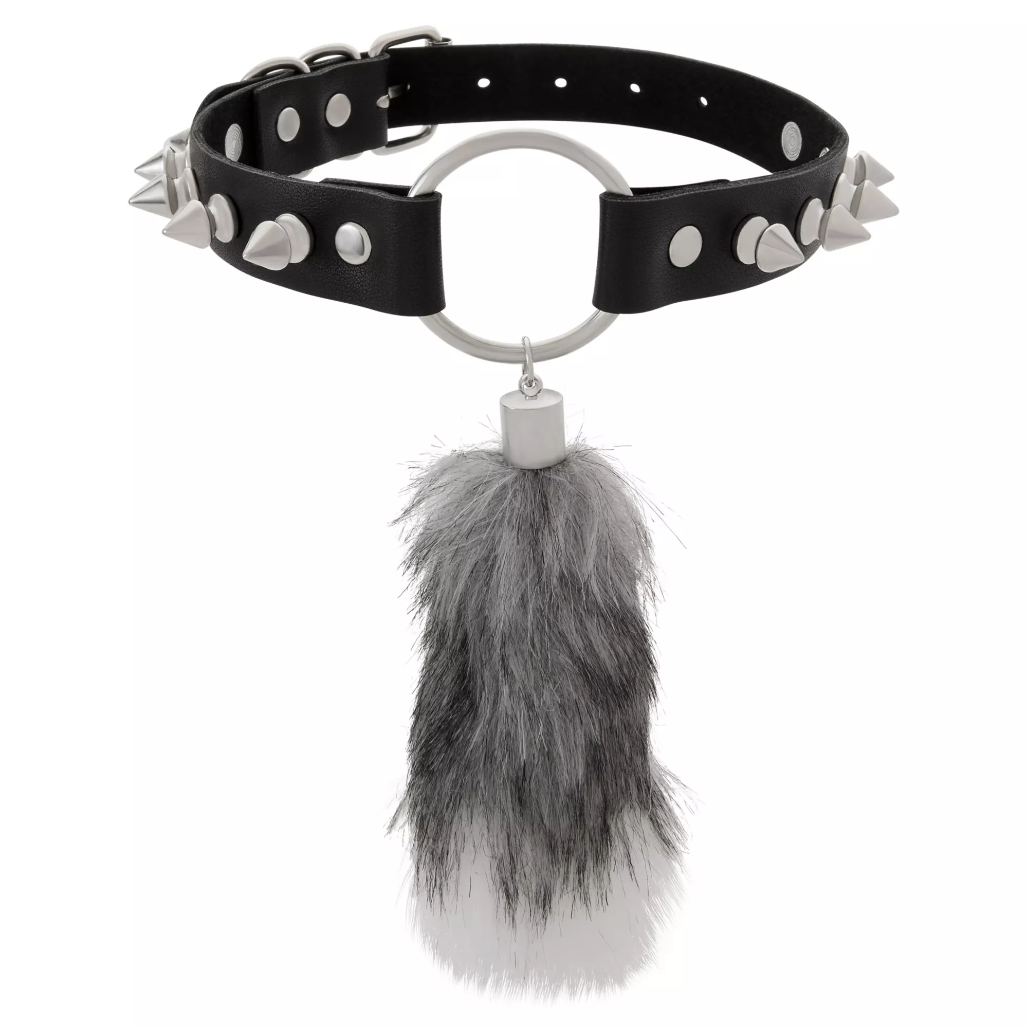 Furry Tail Spiked Faux Leather Choker Necklace