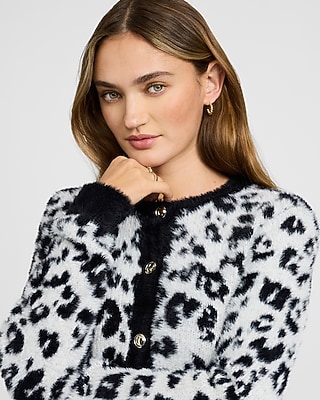 Fuzzy Leopard Novelty Button Cardigan in Franklin, TN