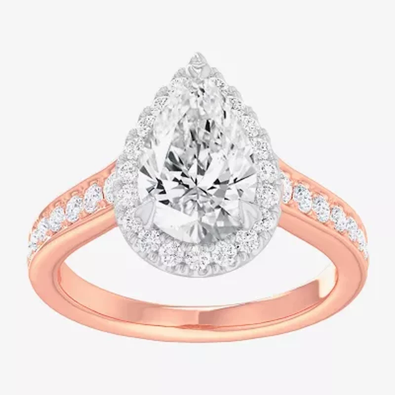 G-H / Si1-Si2) Womens 1/ CT. T.W. Lab Grown White Diamond 14K Gold Pear Side Stone Halo Engagement Ring