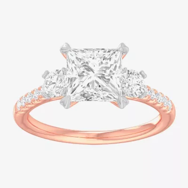 (G-H / Si1-Si2) Womens 2 1/2 CT. T.W. Lab Grown White Diamond 14K Gold Side Stone 3-Stone Engagement Ring