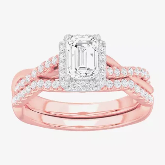 (G-H / Si1-Si2) Womens 1 1/2 CT. T.W. Lab Grown White Diamond 14K Rose Gold Side Stone Halo Bridal Set