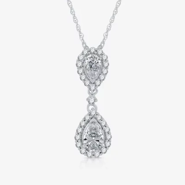 (G-H / Si2-I1) Womens 1 CT. T.W. Lab Grown White Diamond 10K White Gold Pear 18 Inch Pendant Necklace