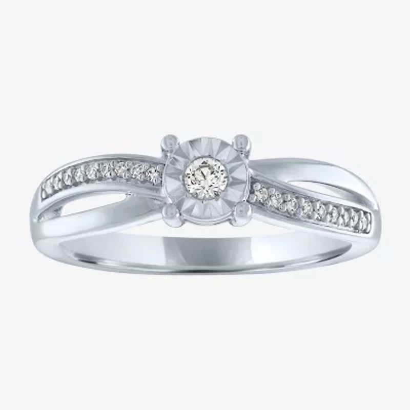 (G-H / Si2-I1) Womens 1/10 CT. T.W. Lab Grown Diamond Sterling Silver Infinity Round Side Stone Cocktail Ring in Franklin, TN