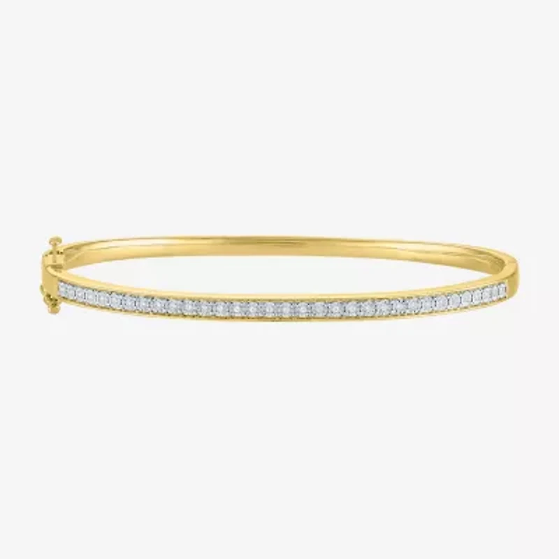 (G-H, Si2-I1) Womens 1/10 CT. T.W. Lab Grown White Diamond 14K Gold Over Silver Bangle Bracelet