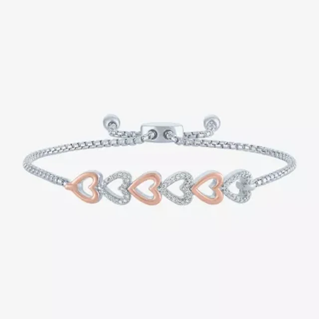 Rhythm & Muse Heart Beat (G-H / Si2-I1) Womens Diamond Accent Lab Grown White Diamond Sterling Silver Heart Bolo Bracelet