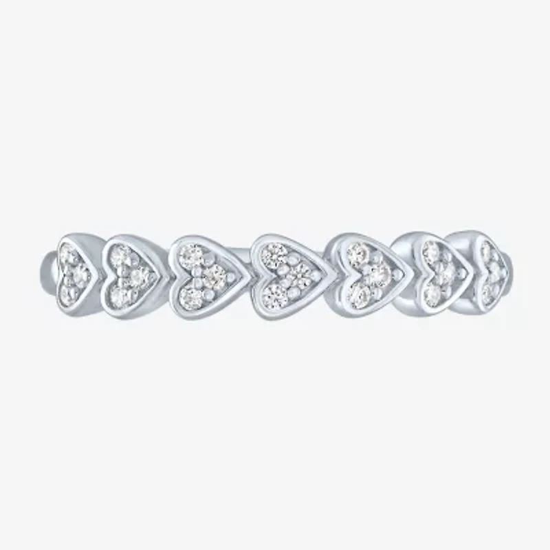 This sweet dainty heart-shaped band makes a great gift for a loved one or yourself. Crafted from Sterling Silver, this ring also comes prong set with Lab Grown Diamonds.