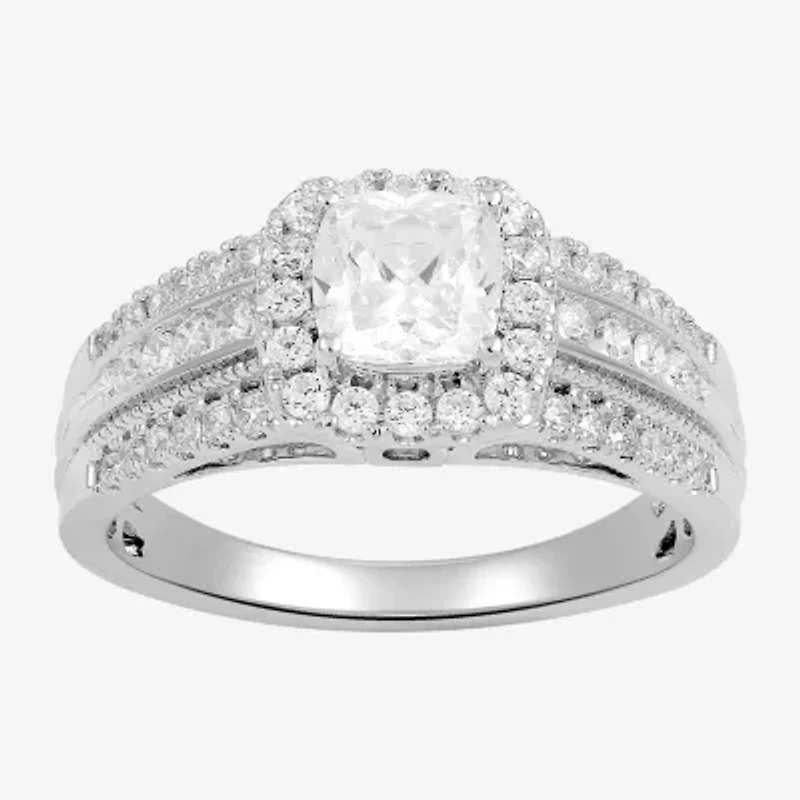 (G / I1) Womens 1 1/2 CT. T.W. Lab Grown White Diamond 10K Gold Cushion Side Stone Halo Engagement Ring