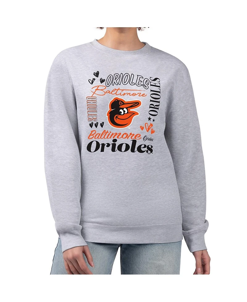G-iii 4Her by Carl Banks Women's Heather Gray Baltimore Orioles Collage Team Graphic Fleece Pullover Hoodie