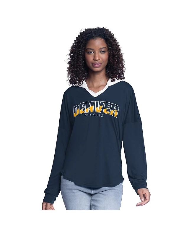 G-iii 4Her by Carl Banks Women's Navy Denver Nuggets Bench Player Oversized Long Sleeve Hooded Top