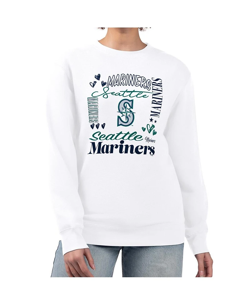 G-iii 4Her by Carl Banks Women's White Seattle Mariners Collage Team Graphic Fleece Pullover Hoodie
