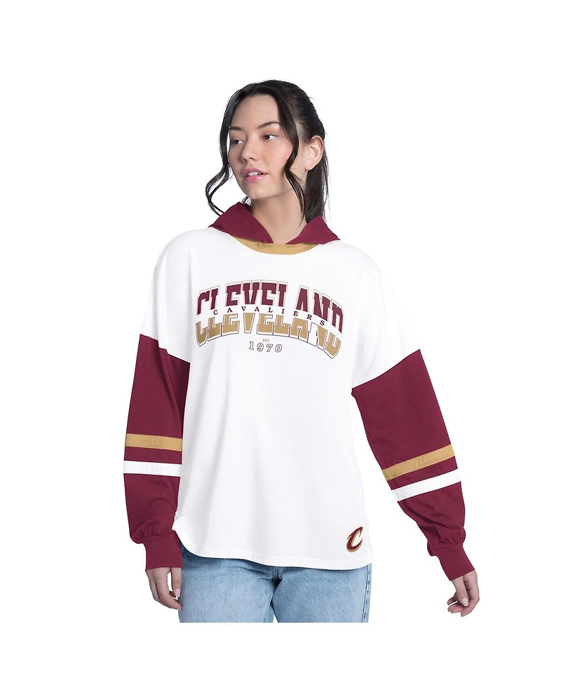 G-iii 4Her by Carl Banks Women's White/Wine Cleveland Cavaliers Key Player Oversized Hooded Long Sleeve T-Shirt